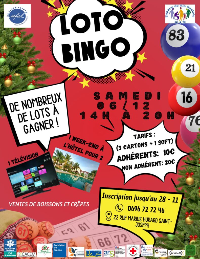 Loto Bingo !! De nombreux lots à gagner : Week-end à l’hôtel, Tv, et plus encore !